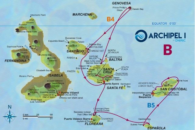 Our 8-day itinerary aboard the yacht Archipel I allows you to combine the seabird colonies of Mosquera and the exclusive Genovesa with the spectacular volcanic islands Bartolome and Charles Darwin Research Station. Moreover, you will have the chance to explore Española, the most southern point of the archipel and swim with sea lions in the Loberia, on Isla Floreana.