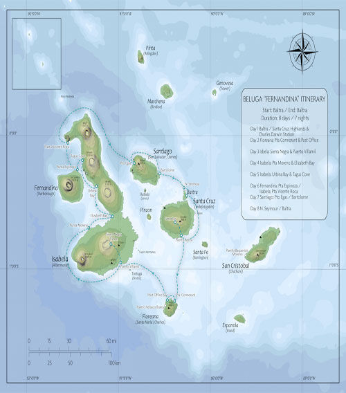 Fernandina itinerary focuses on the Central and Western Islands, including visits to Western Isabela and Fernandina Island, two highlights of the Galapagos Islands.