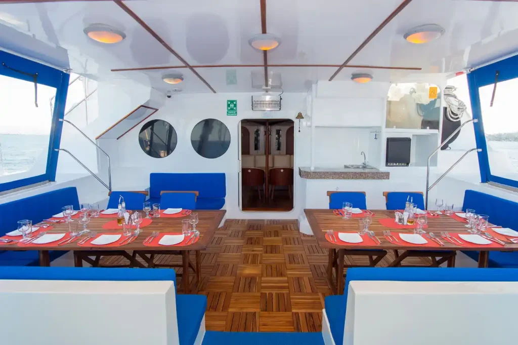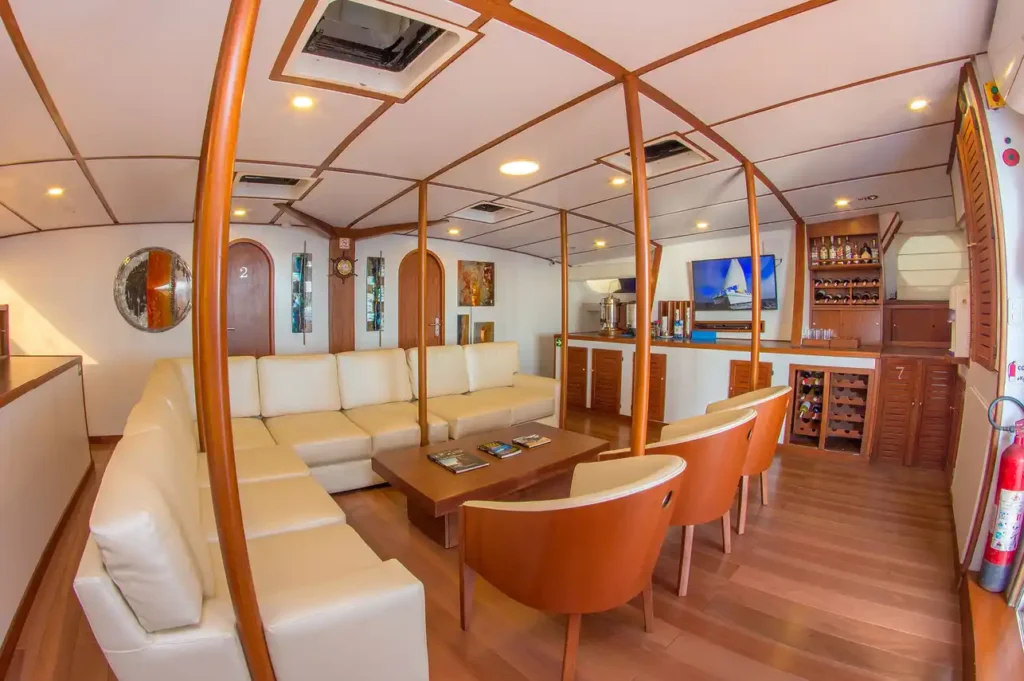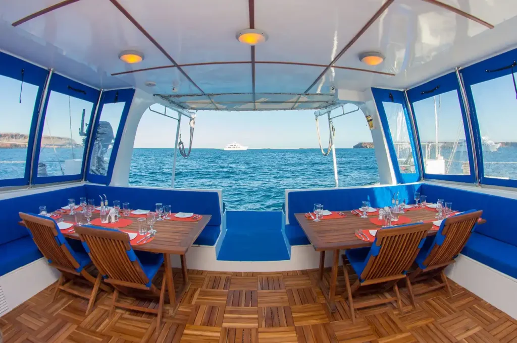 Included: VAT, Fuel Surcharge, Drinking Water, Tea & Coffee, Full-Board Meal Plan (All meals), Snacks, Kayaks, Naturalist Guide, Snorkel Gear, Beach Towels, Cabin Towels, Complimentary Toiletries, Deck Towels.